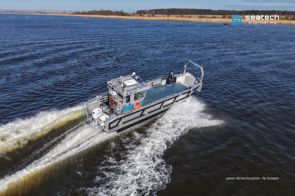 The collaboration between Seatech Engineering and JABO, on yet another project, demonstrated full scope of supervision over vessel’s development proces – from design to construction – including aligning client’s requirements with ship’s capabilities and budget, as well as selecting appropriate materials and specialized equipment. SE-230 thus serves as a base platform – a structure that can be developed and modified depending on the specifics of planned operations, the type of cargo being transported, as well as environmental conditions. In practice, this means the ability to create specialized landing craft for entities across various sectors without the need to start the design process from scratch. Instead, the client receives a solution based on an existing, proven design that can be precisely tailored to their operational needs.
